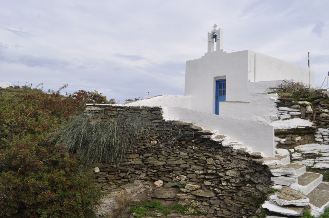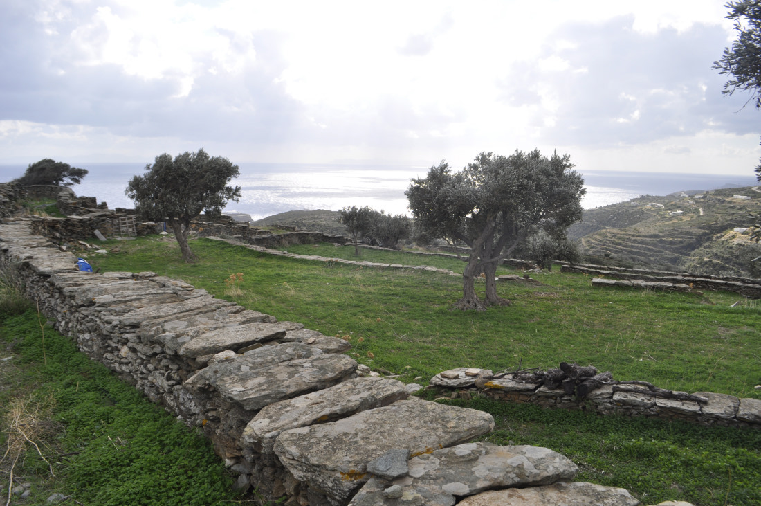 A quelques centaines de mètres du Monastère de Vryssi, le sentier 3 fait une fourche. L’alternative 3A mène à la baie d’Apokofto et à l’église de Chryssopigi. Le sentier offre une belle vue sur la mer Egée pendant toute la descente vers la côte.